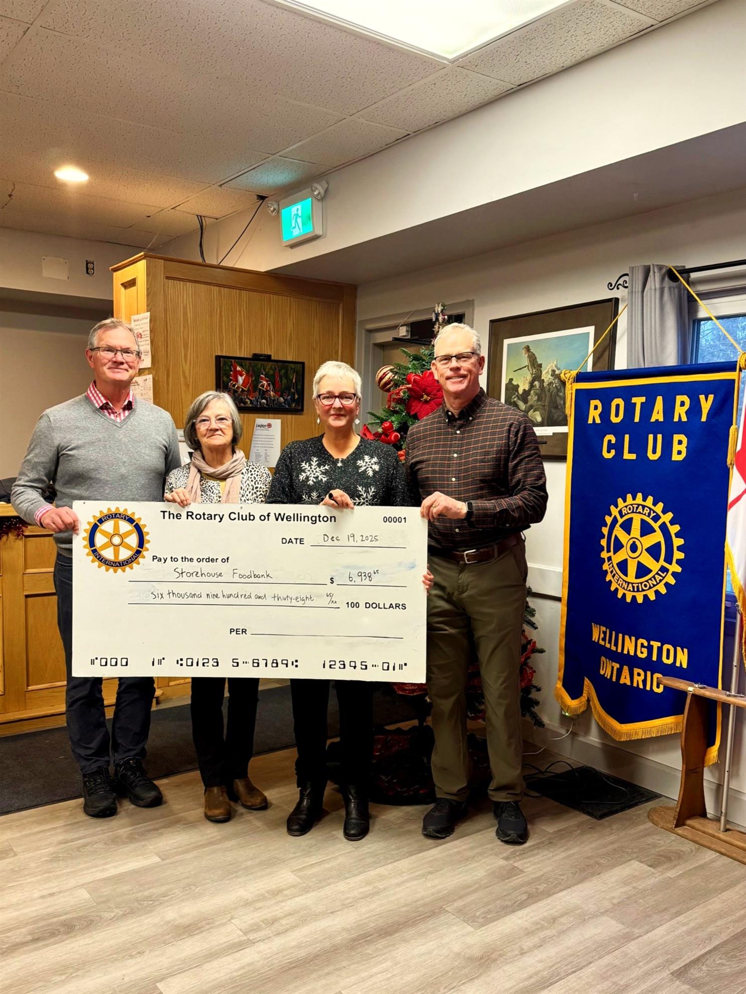 Dec 19, 2025 - Proceeds of the Wellington Rotary Annual Fundraiser Dinner event were presented to the wellington Storehouse Foodbank and Prince Edward County Memorial Hospital Foundation ($6,938 each). Story on Quintelive.ca