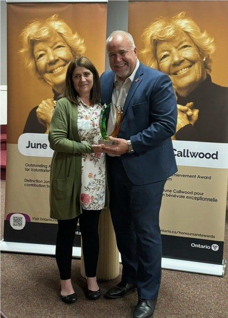On a happier note, Christine and I attended an awards ceremony in Belleville this past Wednesday honouring local volunteers for their service. Our club had nominated Linda Downie for an Ontario Volunteer Service Award at the time of her retirement. She was one of 6500 recipients across the province, about 150 of whom were from the Quinte region. At the same time, we also nominated Linda for the June Callwood Outstanding Achievement Award for Voluntarism. Up to 20 of these are awarded annually across the province; this year Linda was one of only 17 recipients and the only one from the Quinte Region. The award was presented by MPP Todd Smith while Linda’s husband, Bob, sat beaming in the front row. Linda was very touched and there were more than a few discreet tears.