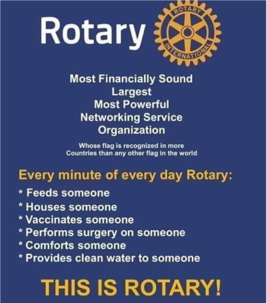 - Roger reported that local resident Christine Gillespie donated her late mother’s Paul Harris pin which he will put in our display case.