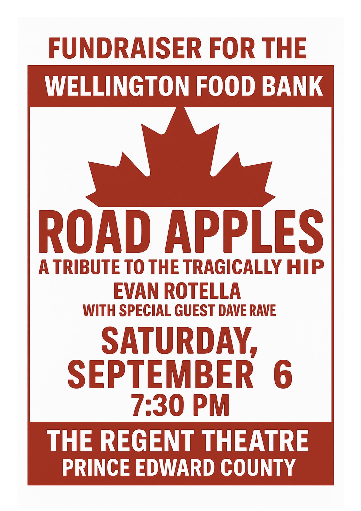 Presented by Cadillac Lounge Productions & Wellington on the Lake, this special fundraising concert will feature Road Apples, the premier Tragically Hip tribute band, delivering the iconic sound and spirit of one of Canada's most beloved bands.