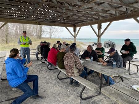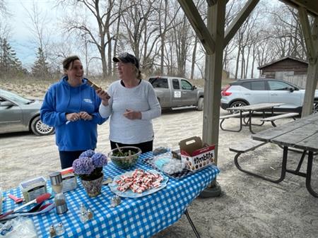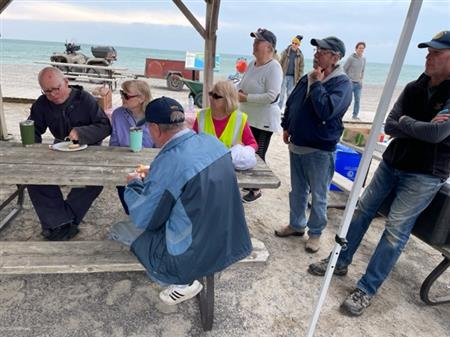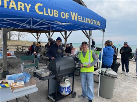 The 2023 Rotary Beach Cleanup and BBQ occurred the same day as the PEC Trash Bash day on Saturday April 23rd. Many Rotarians and Friends of Rotarians made the cleanup a quick effort, and we had a fabulous BBQ of hamburgers and sweet eats (BBQ by Bill Hurst and sweet eats by Margo).